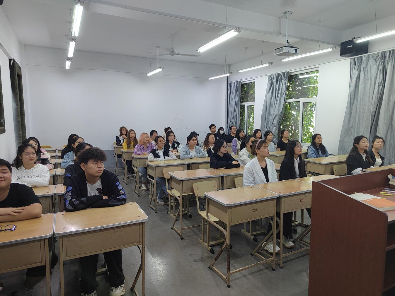▲外国语学院、国际交流学院组织全体师生观看2023年度高校思政课导学课