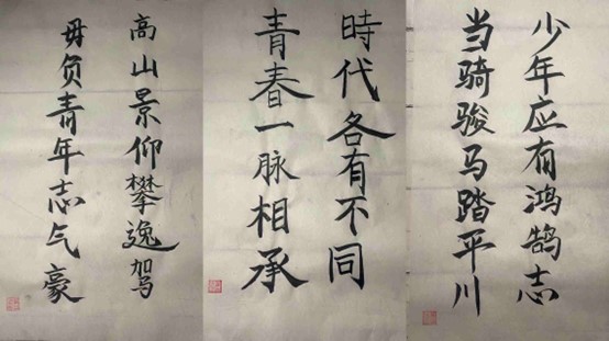 同学们将书法与专业知识相结合,在纸上挥洒墨汁,用心书写每一笔笔画、每一个汉字,深刻感受到了岁月的沉淀和历史的厚重。作品各具特色,无不透着或规范、或严谨、或灵动的气质,充分展示出我院学生扎实的书法功底和良好的精神风貌。