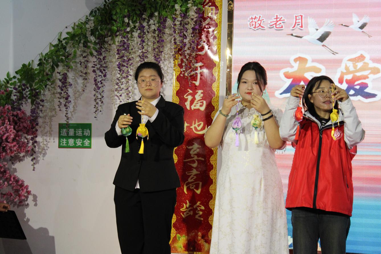 同时,同学们还参与了书法展示和香囊的制作成果展示,为老人们送上了美好的节日祝福,展现了我院学子尊老敬老的精神面貌。