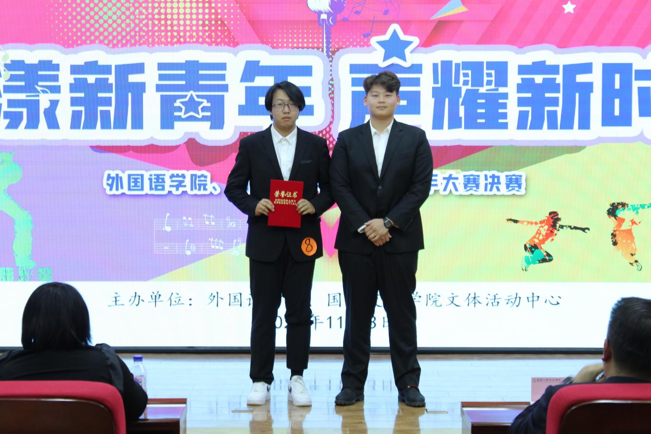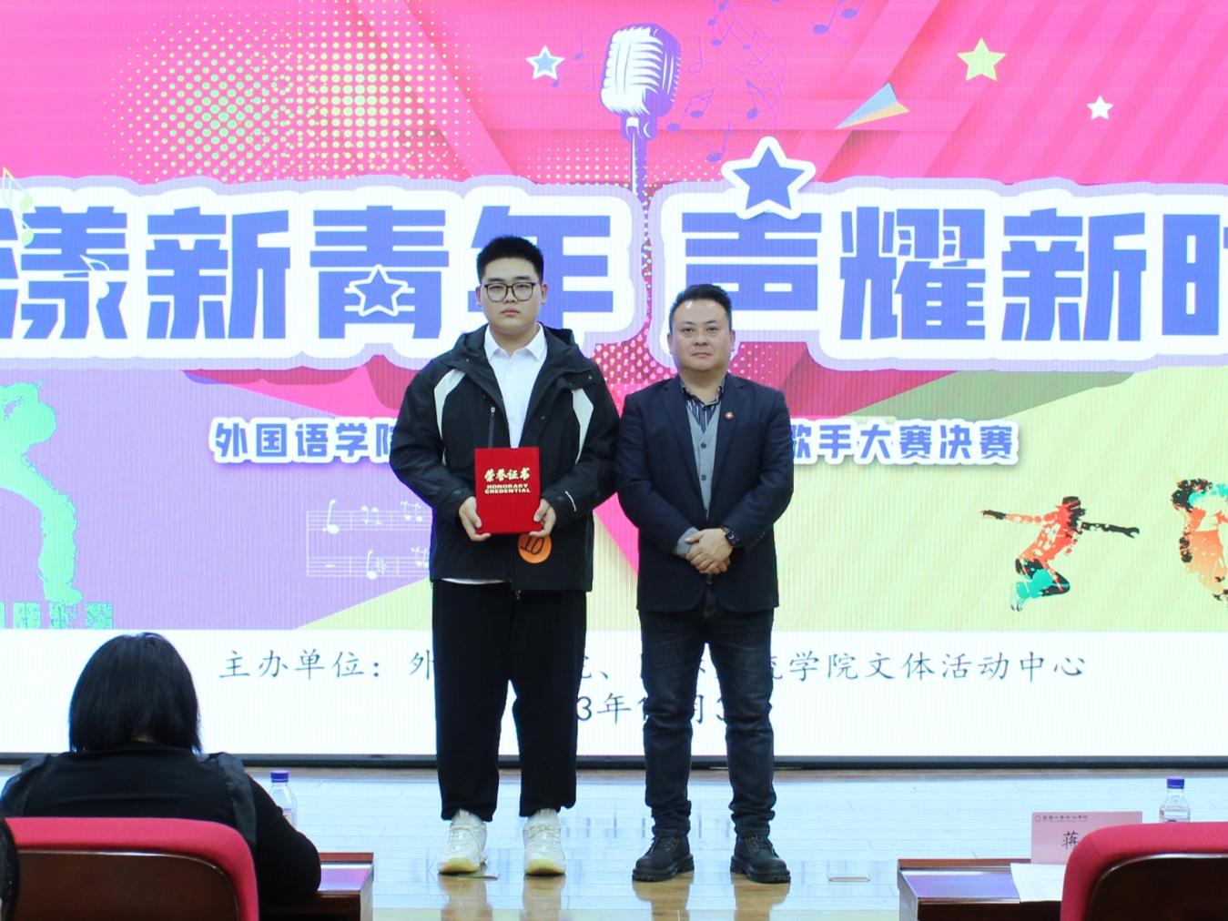 为进一步加强学院美育工作建设,促进学生德智体美劳全面发展,丰富学生的业余文化生活,11月3日下午,外国语学院、国际交流学院于筑梦报告厅成功举办“花漾新青年,声耀新时代”十佳歌手大赛决赛。学院党总支书记蒋森,团委学生副书记牛远哲,秘书长郭上瑜、韩家琪,学生会秘书长付延俊,文体活动中心秘书长肖晨,第十四届校园十佳歌手大赛亚军张达担任评委,团委书记戴军威及团学组织学生干部共同观看比赛,大赛由学生干部彭凌洁、宋津舟主持。