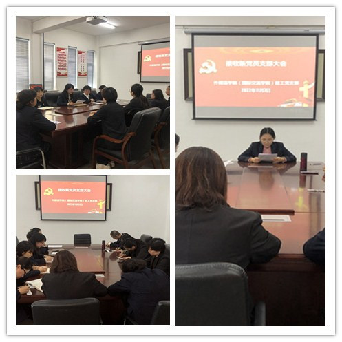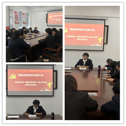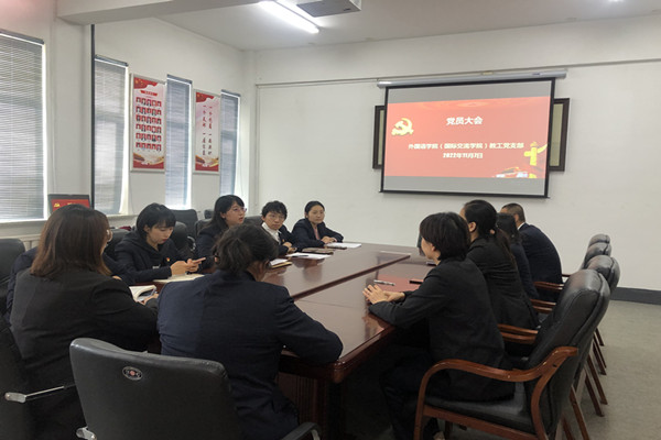 11月7日,外国语学院(国际交流学院)教工党支部在综合实训楼201党团活动室召开11月份党员大会,会议由教工党支部书记张昀主持。