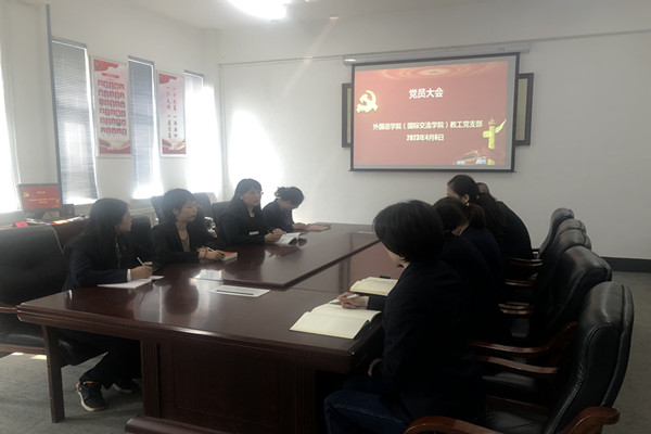 4月6日,外国语学院(国际交流学院)教工党支部在201会议室召开4月份党员大会,会议由教工党支部书记张昀主持。