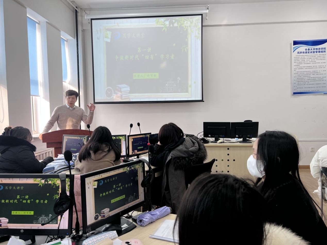 讲座的主题为“争做新时代‘四有’学习者”。许院长围绕“四有公民”、“四有青年”、“四有”语言学习者三个方面展开讲座,启发、鼓励和教会同学们争做新时代有志青年、有识青年、有为青年、有德青年。同时,详细阐述了新时代“四有”外语学习者的内涵,即应该具备“有目标、有习惯、有策略、有思想”,也给学生布置了任务:如何理解“博学之,审问之,慎思之,明辨之,笃行之”。
