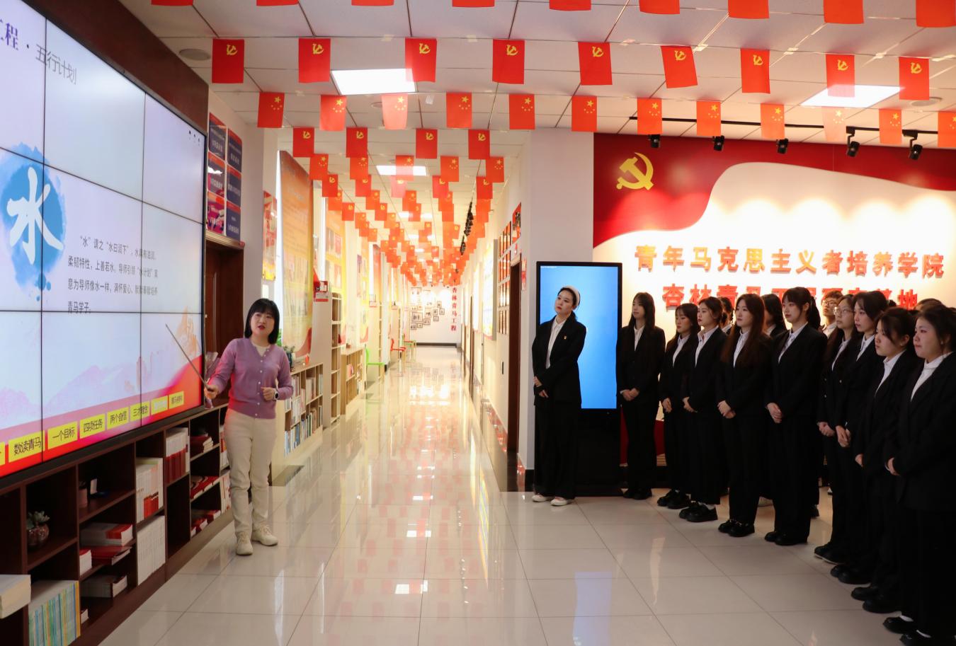 在基地内,工作人员首先带领学生们参观了展览馆以及红色主题图书馆,并一一介绍了每个人物背后的感人故事。随后,讲解员用生动幽默的语言向同学们讲解了杏林青马工程的培养理念、其发展沿革的历程以及青马工程取得的成就。他们“一四二三五”的培养模式及中医理念和青马工程相融合的“五行计划”,使同学们赞不绝口,纷纷表示,要深入学习马克思主义理论,努力成为马克思主义的信仰者、中国传统文化的继承者和中国特色社会主义的建设者。