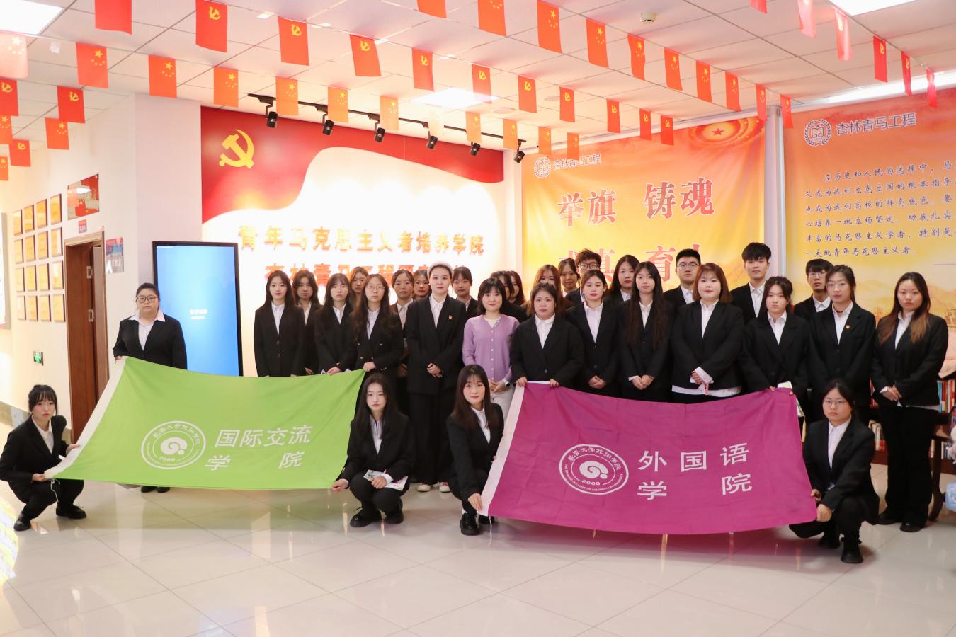 为进一步弘扬中华优秀传统文化,增强师生文化认同感,全面提升思想政治素质,坚定理想信念,强化责任担当,精心上好“开学第一课”,3月7日,外国语学院、国际交流学院23级辅导员郑雨佳带领30名学子赴长春中医药大学“杏林青马工程”研究基地参观学习,长春中医药大学青年马克思主义者培养学院综合部主任陈竞博热情接待了我院师生。