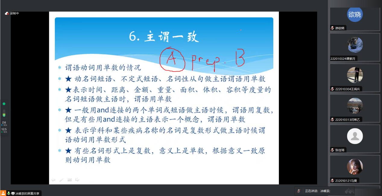 最后,李磊老师通过语法和词汇板块的讲座向同学们详细解析了同近义词、主谓一致、虚拟语气等8个方面的知识点,还结合历年真题,分析了完形填空的命题规律和解题技巧。李磊老师指出,掌握扎实的语法基础、提高逻辑推理能力至关重要,同学们要注重对语法知识的系统学习和巩固,通过“学以致用”有效扩充词汇量。