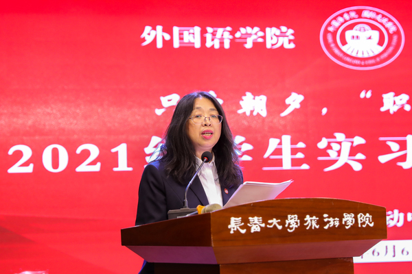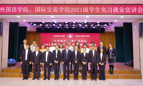 外国语学院、国际交流学院院长彭又新在讲话中就当前实习就业形势作深刻分析,强调了实习就业的必要性和重要性,呼吁学生尽早做好职业规划,要把目光放长远,从自身情况、薪酬待遇、发展空间等方面综合考量,并鼓励同学们要信心满满,奔赴山海,永怀热爱。