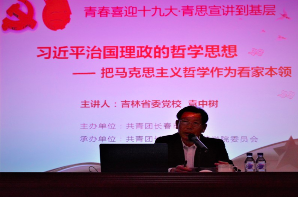 袁教授以《习近平治国理政的哲学思想——把马克思主义哲学作为看家本领》为主题,讲述了:习近平治国理政的哲学思想、为什么要学习马克思主义哲学、什么事马克思主义哲学的本质、马克思主义哲学的主要内容、怎么学习马克思主义哲学等。