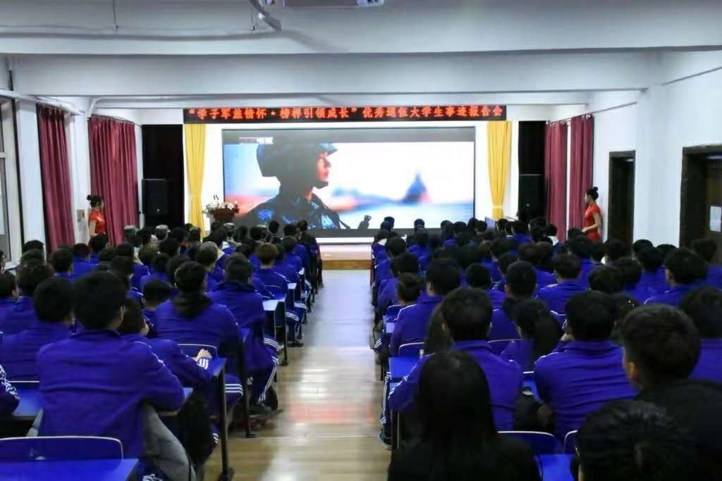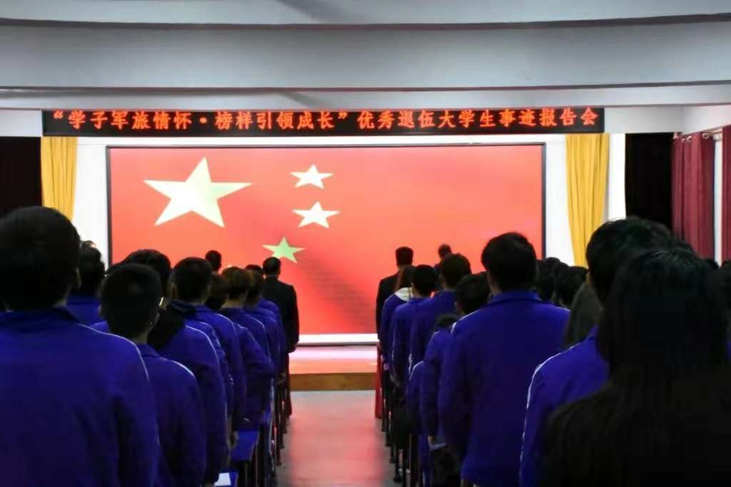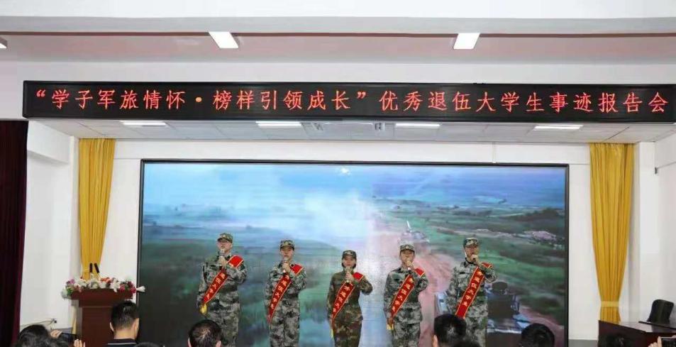 大会在全体人员奏唱国歌中拉开帷幕。本次报告团由来自五个学院的五名优秀退伍大学生组成。在汇报前,通过视频观看了入伍新兵及退伍老兵的飒爽英姿。