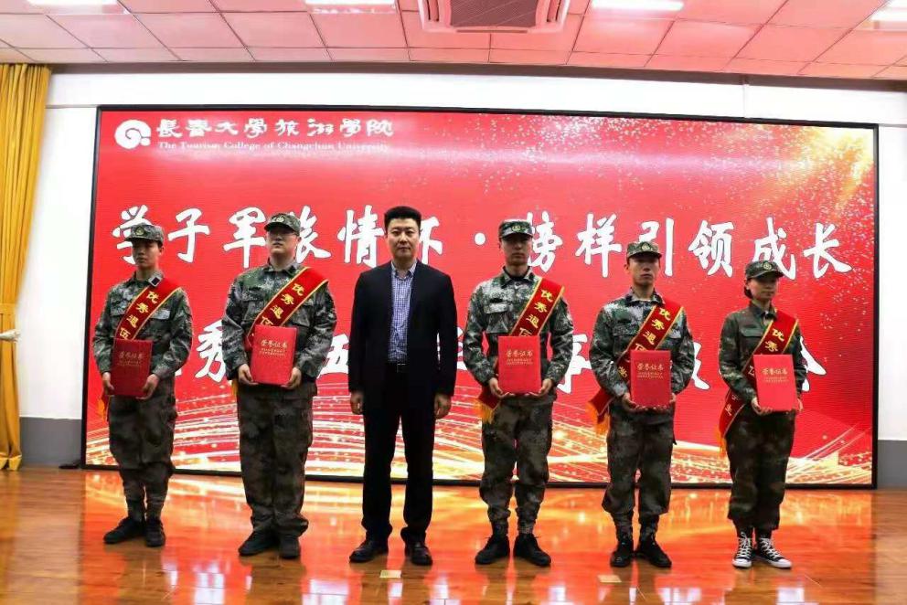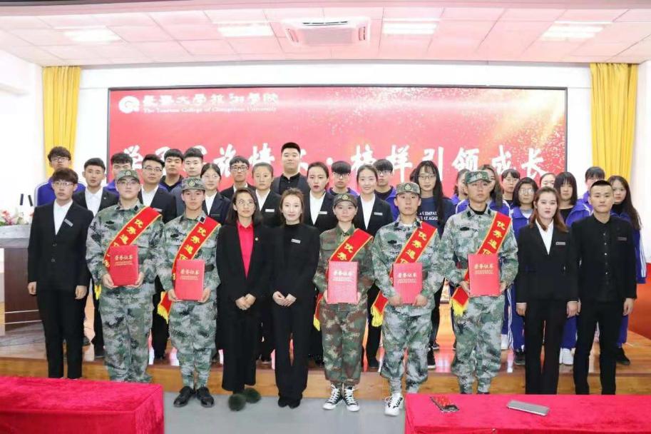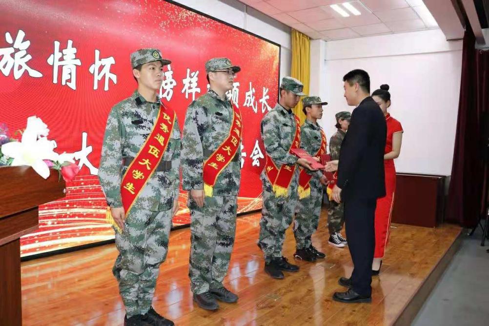 随后,高阳为五名学生颁发“优秀退伍大学生”荣誉证书。为感谢部队带给他们的成长与收获,感恩学校提供良好的学习氛围,他们昂首挺胸,阔步向前,合唱了一首《强军战歌》。在歌声的感染下,在座的2018级同学不禁回忆起军训期间的点点滴滴,不约而同的高声歌唱,将现场气氛推向了制高点。