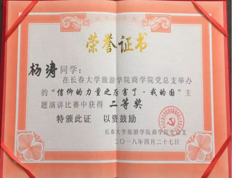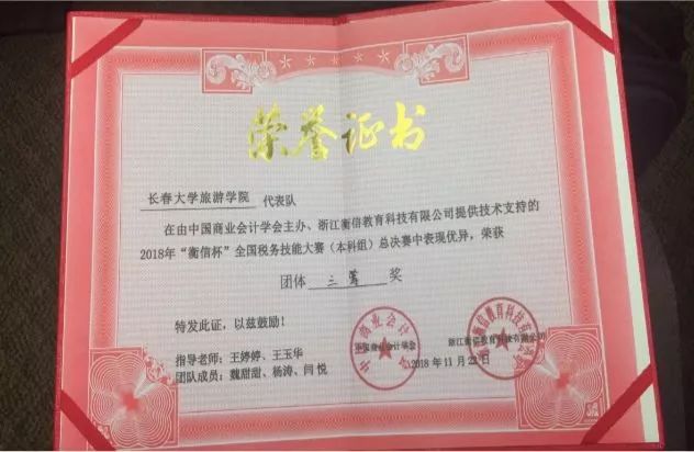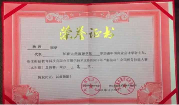 在校期间,曾获吉林省“衡信杯”税务技能大赛获团体一等奖、全国大学生“衡信杯”税务技能大赛获团体三等奖,多次获得学校奖学金及“优秀团干部”荣誉称号。