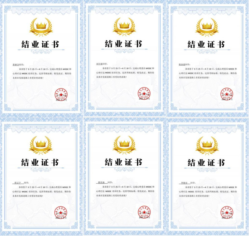 学生工作处于3月25日——4月10日依托全国高校心理委员工作平台开展线上心理委员专题培训,各年级心理委员积极参与,百余人通过考试取得结业证书。本次培训提高了心理委员的专业素质和工作能力,充分发挥了心理委员在班级中的作用,为完善金沙官网四级心理健康教育工作网络、做好全校学生心理健康教育和特殊学生群体的心理疏导及干预工作保驾护航。