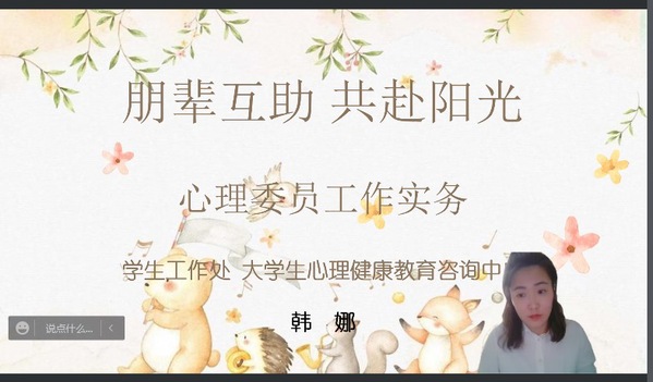 为全面提升心理委员工作技能,铸牢疫情防控“心”战线,3月23日中午12:30分,学生工作处大学生心理健康教育咨询中心通过腾讯会议,组织开展了题为“朋辈互助,共赴阳光”的心理委员培训,主讲人为心理中心专职教师韩娜,近百名心理委员参加本次培训。