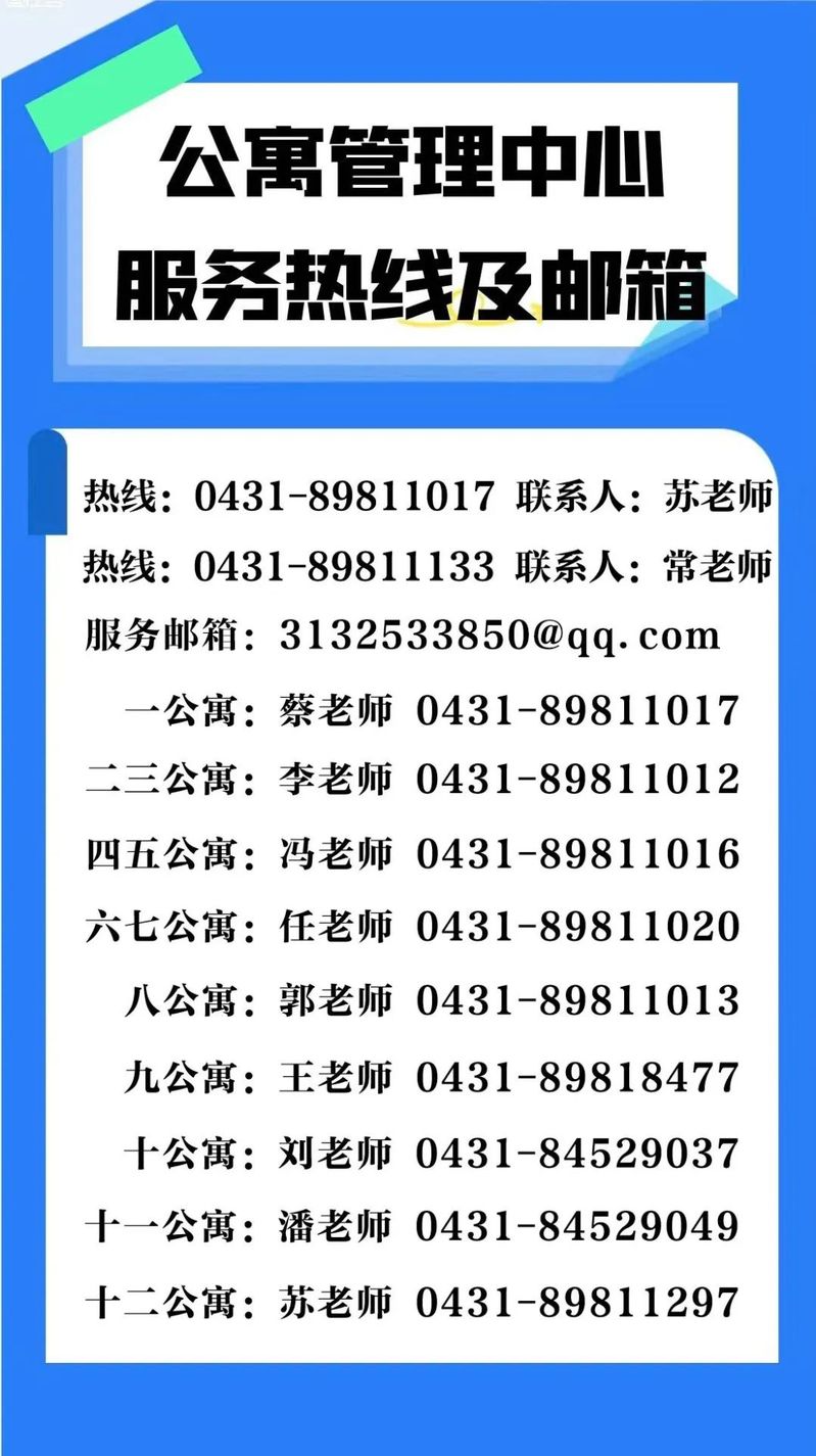 希望长旅学子能够保存这张图片,积极通过热线及邮箱及时反映公寓管理服务工作中存在的各种问题,以及个人意见和建议。公寓管理中心全体人员将竭诚为同学们服务,争取高质量做好教育育人、管理育人和服务育人工作,助力广大学子在长旅健康成长、快乐成才,为推动学校事业高质量发展贡献力量。