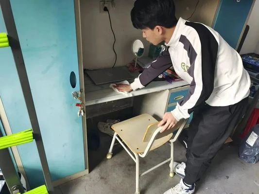各公寓组织学生对寝室进行彻底大扫除,清扫每个角落、有序整理生活用品、擦除物品表面积灰、清洗更换床单被罩等。各寝室学生不畏脏不怕累,全身心投入到劳动中。部分寝室自发购买消毒用品,对寝室进行全方位消毒。在本次大扫除活动中,大家齐心协力、分工合作,营造了整洁、优美、温馨、文明的寝室环境,打造出了别样温馨的“小家”。