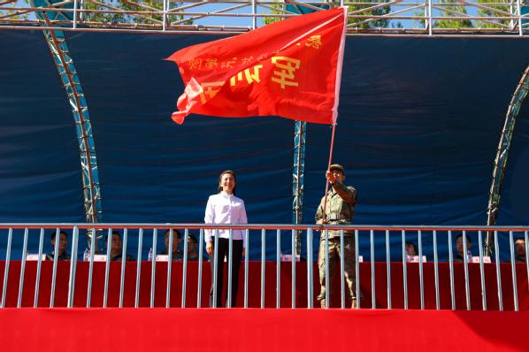党委副书记、纪委书记程越授予军训团团旗