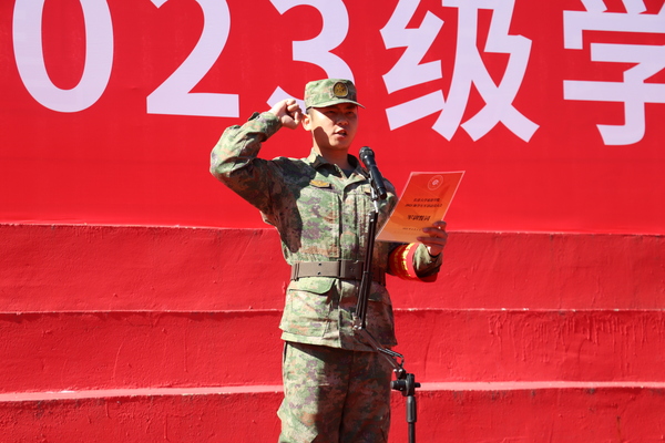 教官代表夏天阳在讲话中表示,全体参训教官将以高昂的士气、饱满的热情和严谨的作风投入军训中,树军人良好形象,展部队过硬作风,力争将部队的优良传统传递给学生,做到按纲施训、科学组训、文明施训,确保本次军训任务高质量完成。