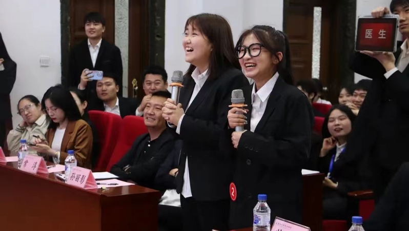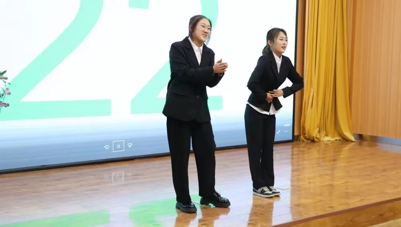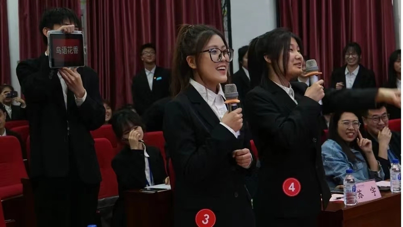 在寝室默契大挑战环节,每个寝室选派两名最默契的同学参加,表演者通过肢体语言向猜词者传达题意,争取抢先另一组说出题目,为自己寝室赢得更多分数。