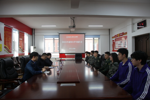 为深入推进教育教学评价工作,引导退役学生爱国、励志、求真、力行,切实做好退役学生的思想教育与管理服务工作,激励学生继续发扬军人的优良作风,4月25日下午,学校在行政楼二楼会议室举办2024年退役大学生座谈会。学生工作处副处长苏宇及10名退役学生参加。会议由学生工作处杨子健主持。