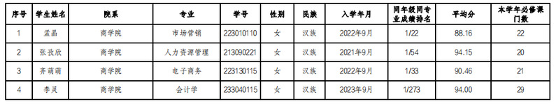 经过个人申请,对符合评审条件学生进行民主推荐,经过国家奖助学金评审委员会及评审领导小组一致通过,拟定以下学生为2023-2024学年国家奖学金获得者,名单如下: