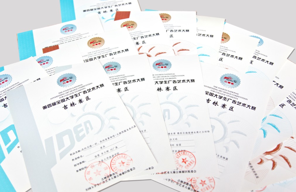 图1-2第四届全国大学生广告艺术大赛学生获奖证书展示