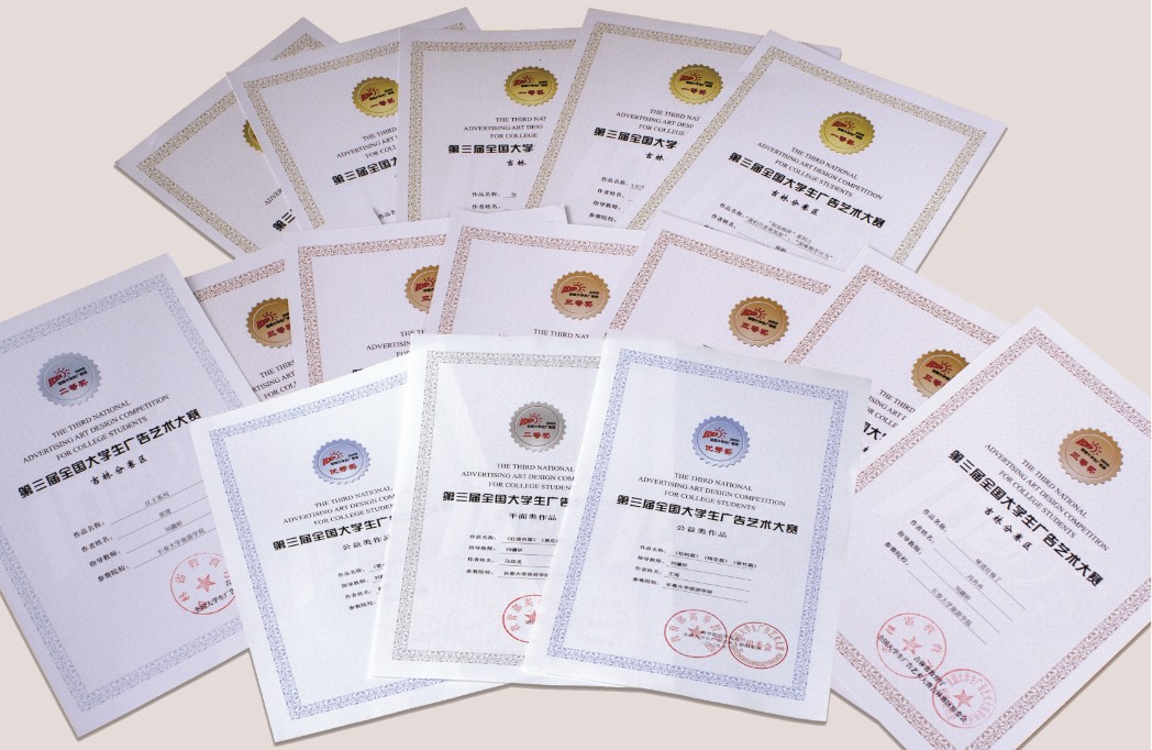 图1-1第三届全国大学生广告艺术大赛学生获奖证书展示