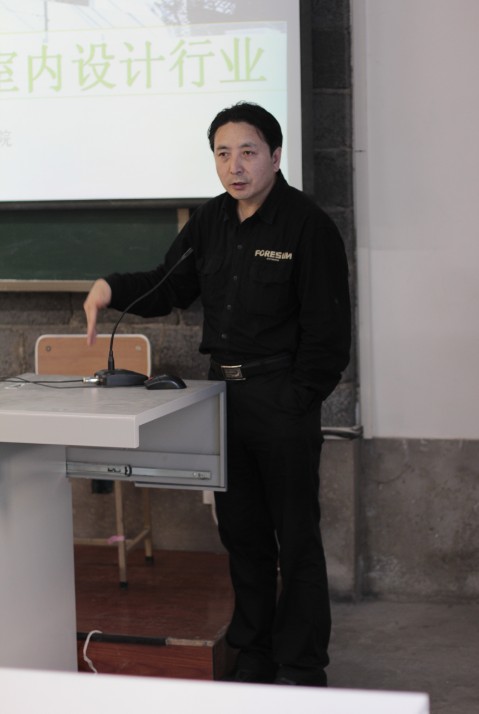 董老师把自己多年来对室内设计专业的办学情况,及各个院校对于室内设计专业的建设情况,乃至现行的专业课程设置和毕业生的就业反馈做了深入的研究报告,并为同学们做了详细的讲解,又把同学们学习中存在的普遍问题和具有的专业优势做了讲解和对比。同学们听的都很认真,从宏观上了解了别的院校环境艺术设计的同学都学了什么,别的院校课程设置都有什么特点、优势、劣势,特别是对全国所有院校的室内设计院校的总体分析,让同学对学习产生了信心。作为二级学院的学生,基础相对较差,美术基础也相对单薄,通过董赤老师的讲解,一定程度上增进了同学们学习的兴趣,激发了同学们对学习的欲望。