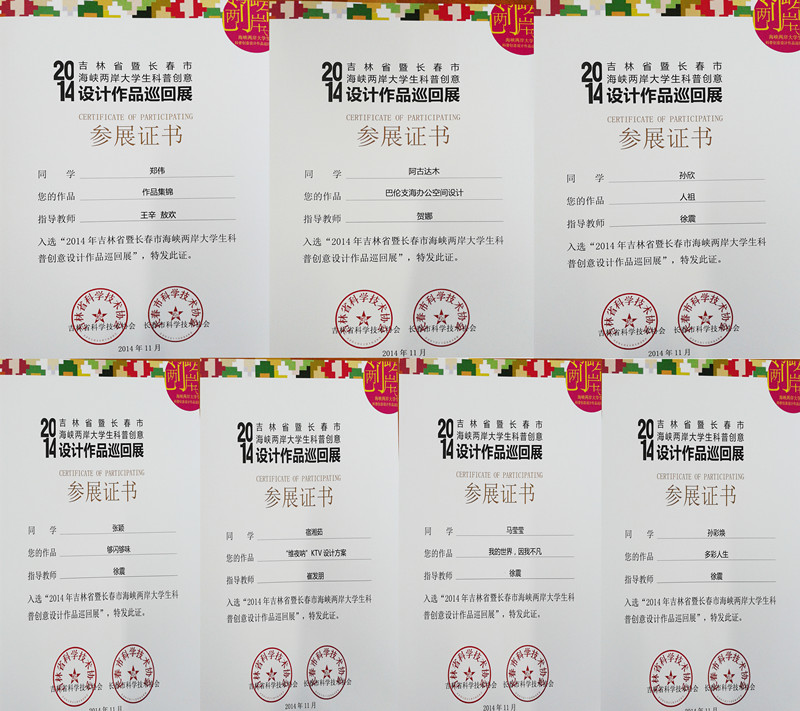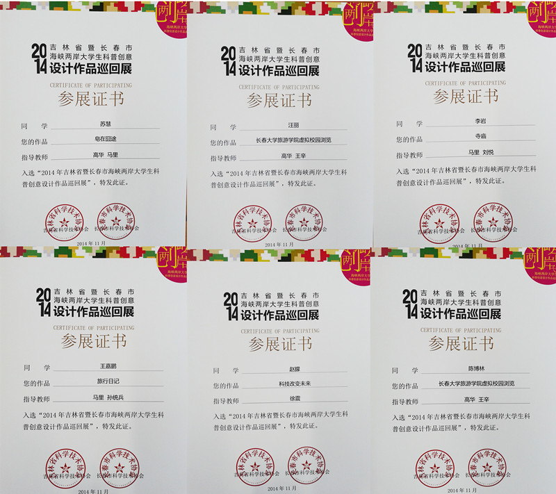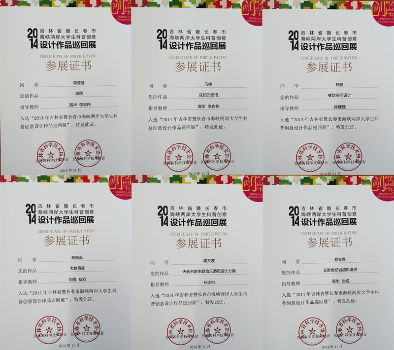 2014海峡两岸大学生科普创意设计作品巡回展参展证书