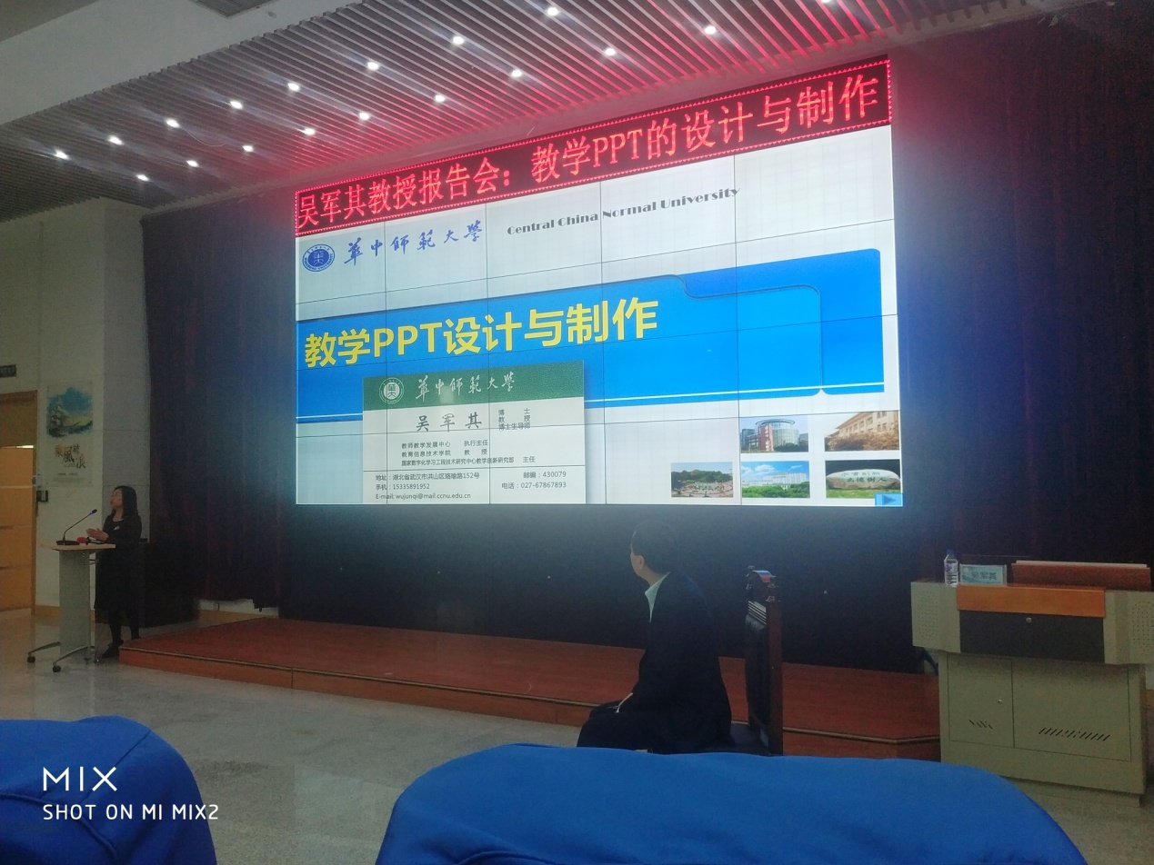在这里,我要感谢6165cc金沙总站检测中心教务处对于教师的支持和培训,能够为我们提供一次如此好的学习机会。2018年5月10日,下午13时,我艺术学院宫雪和郭维维两位教师有幸来到了吉林财经大学教学楼1201室,聆听了吴军其教授的讲座——《教学PPT设计与制作》。