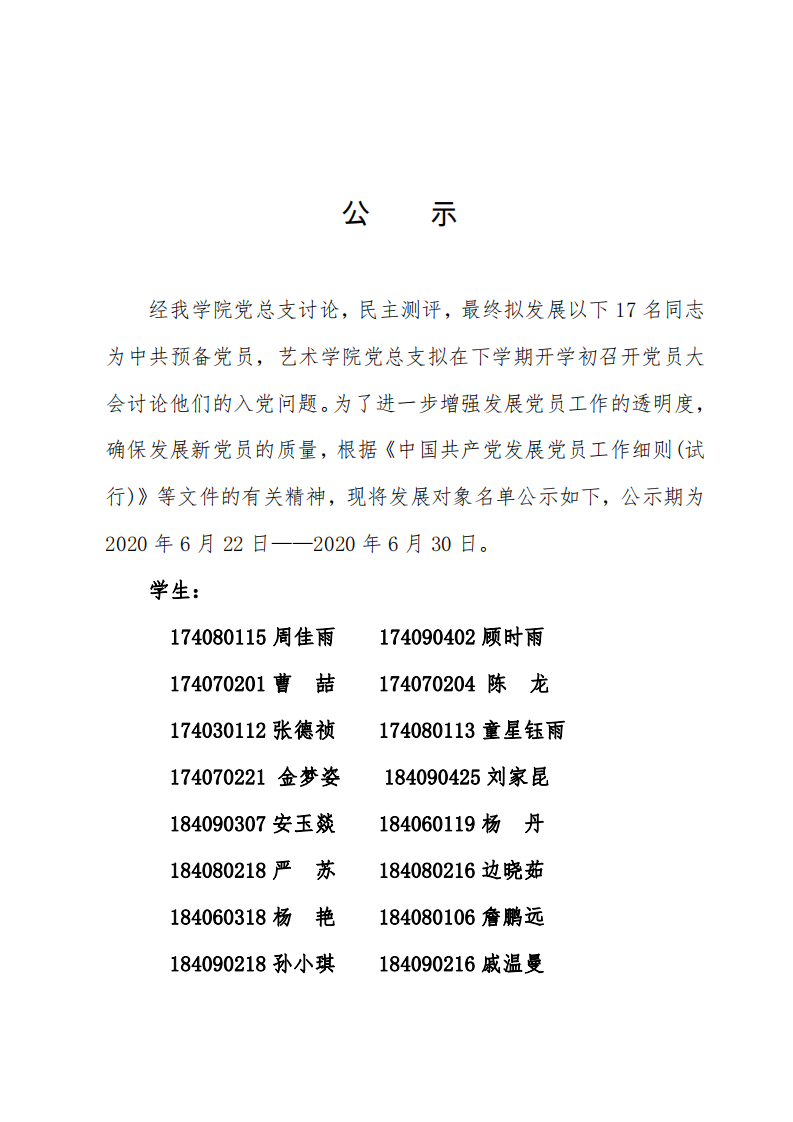2020年上半年党员发展公示