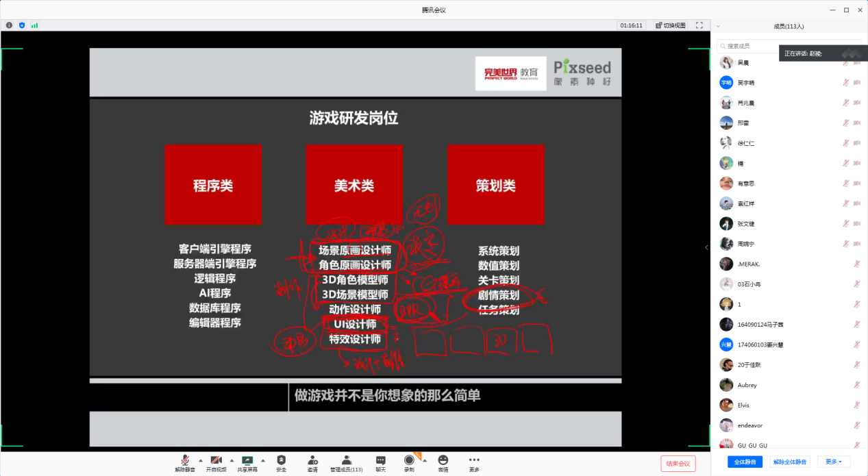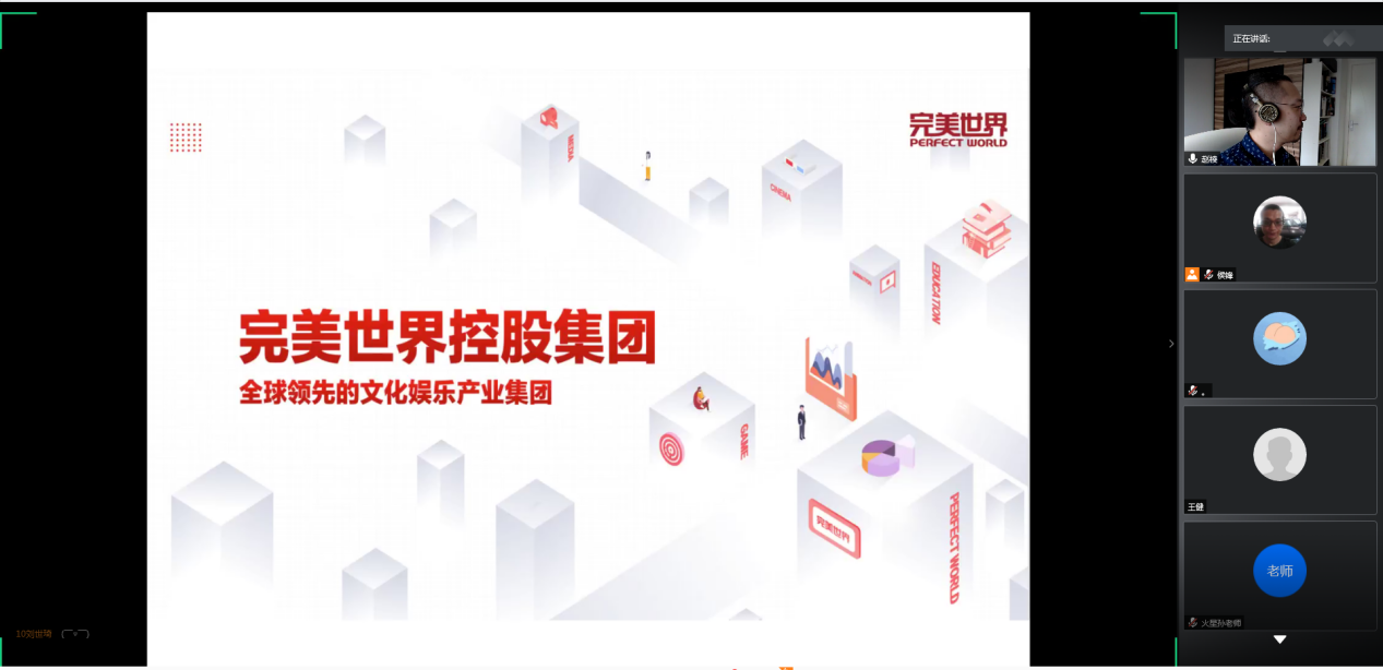 在线上交流平台上,完美世界控股集团和火星时代教育两家企业,为同学们讲解了行业发展前景和未来同学们要努力的方向,以及大行企业用人标准。