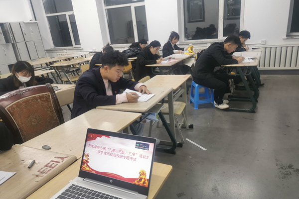 为促进同学们加强对校规校纪的了解,推动大学生整体素质的提高,营造平安和谐文明校园。根据艺术学院党总支开展“三亮、三比、三争”活动的文件精神要求,2021年11月15日晚,艺术学院组织学生党员进行校规校纪考试,旨在强化学生爱国爱党爱校意识,培养学生良好的精神风貌和行为规范,共创平安和谐文明校园。