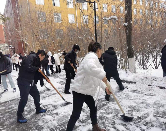 为弘扬“奉献、友爱、互助、进步”的志愿服务精神,发挥学生党员的先锋模范带头作用,根据艺术学院党总支开展“三亮、三比、三争”活动的文件精神要求,2021年11月11日中午,艺术学院党总支组织学生党员和教师党员进行清扫积雪活动,确保大雪后师生出行便捷。