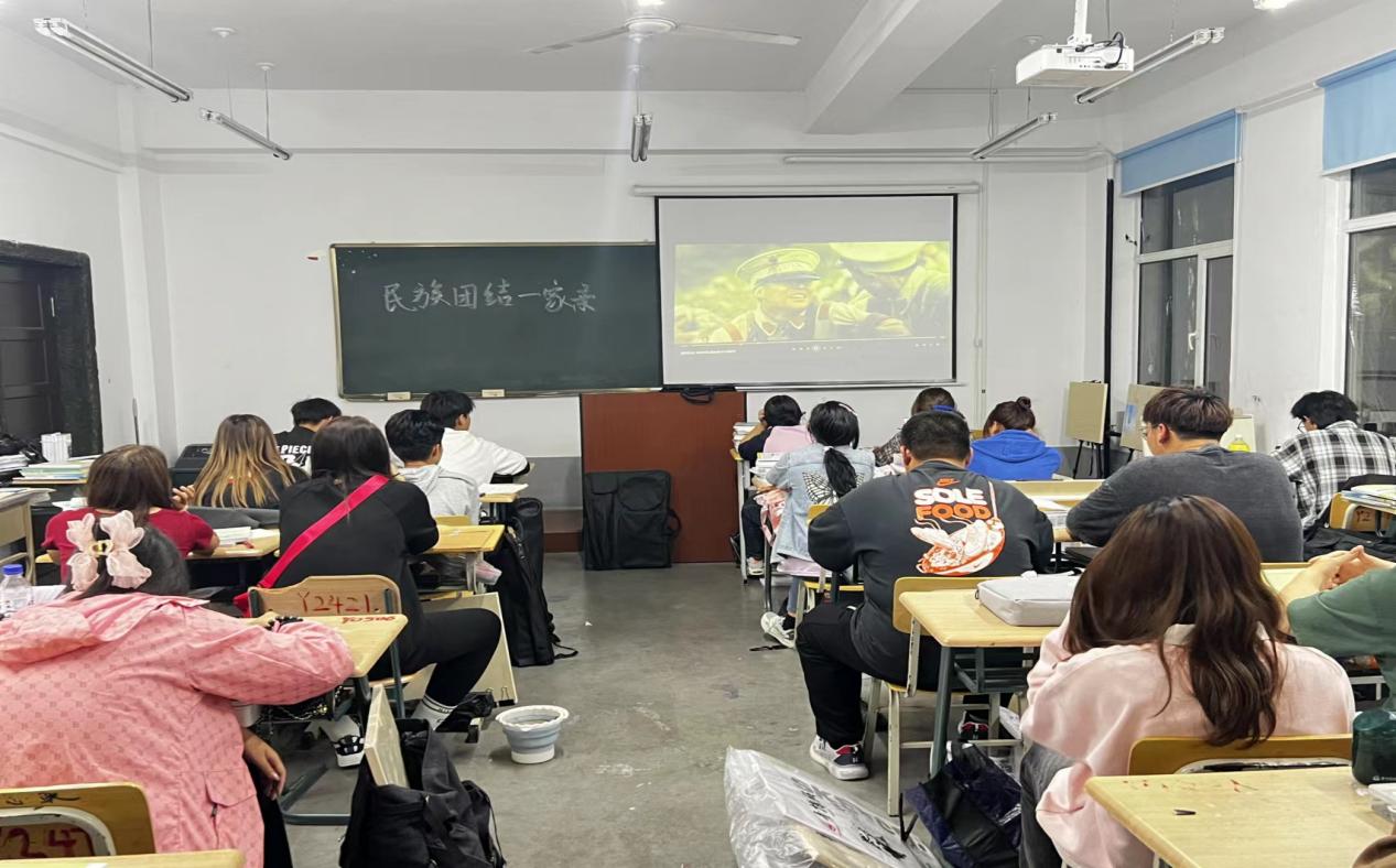 为铸牢中华民族共同体意识,深化民族团结进步宣传教育,让民族文化和红色文化深入人心,9月20日晚,艺术学院组织2023级新生集中观看民族团结电影《真爱》。