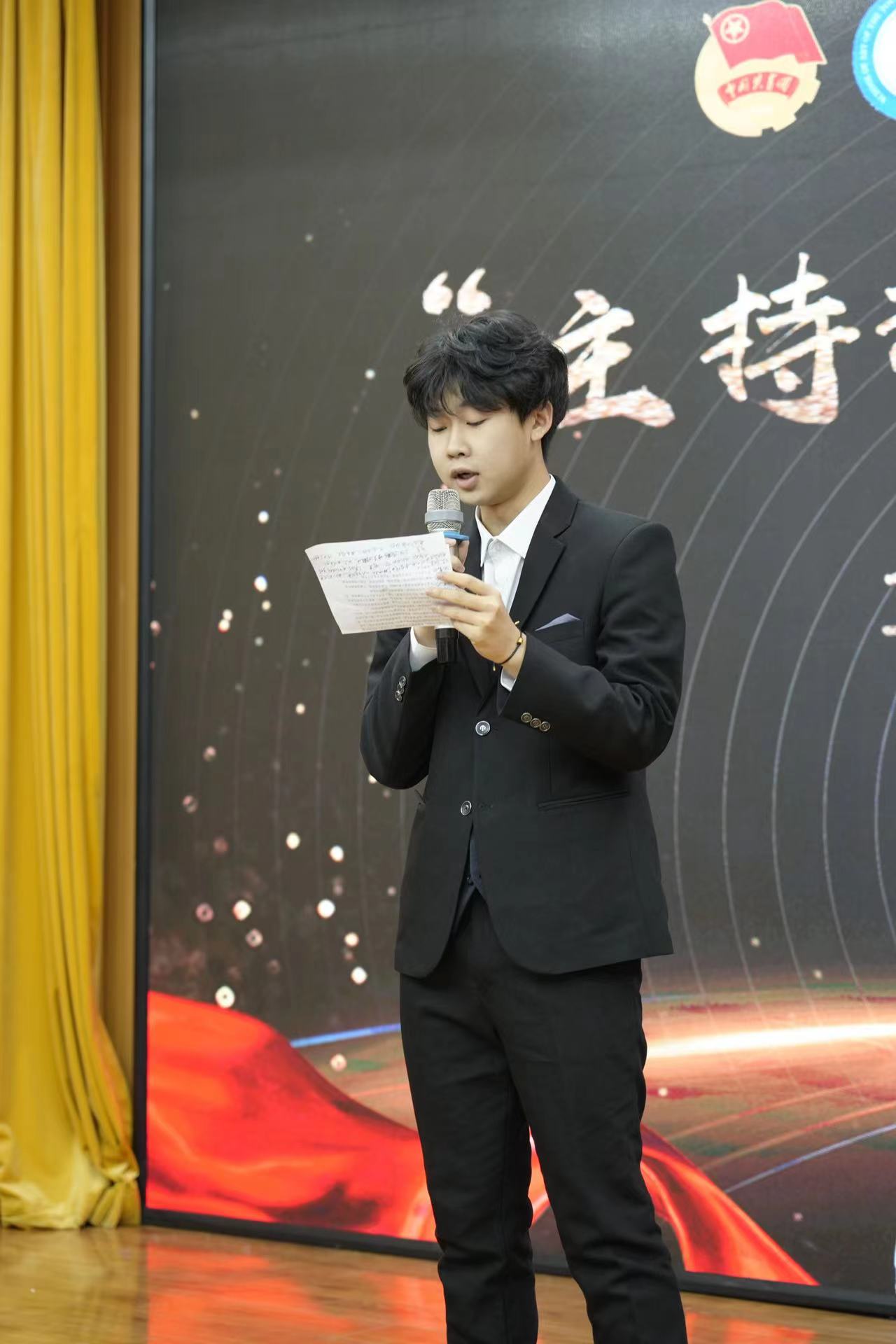 比赛开始,选手们根据签到顺序依次上台进行自我介绍,朗诵准备内容。同学们或激情飞扬,或温婉细腻,声音将情感与朗诵完美结合,感染着现场观众。在即兴主持环节中,同学们信心满满,用气自如,吐字清晰,顺利完成挑战。