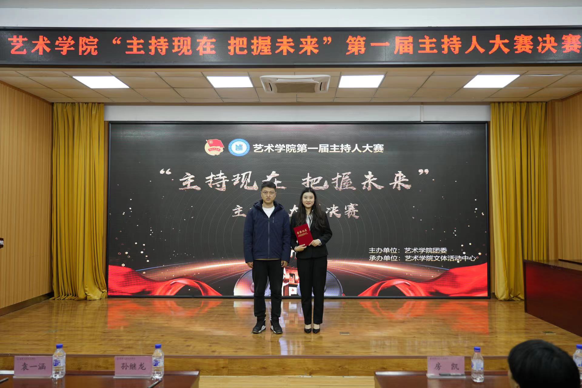 为丰富校园文化生活,提升大学生的综合素质能力,展现当代青年的阳光风采,为热爱主持的同学提供展示才能的舞台,同时,在比赛中发掘有潜力的主持新星,为学院主持人队伍输送后备力量,艺术学院于2023年11月1日举办第三届主持人大赛决赛。艺术学院团委书记孙继龙,学团组织干部担任嘉宾评委参加此次活动。