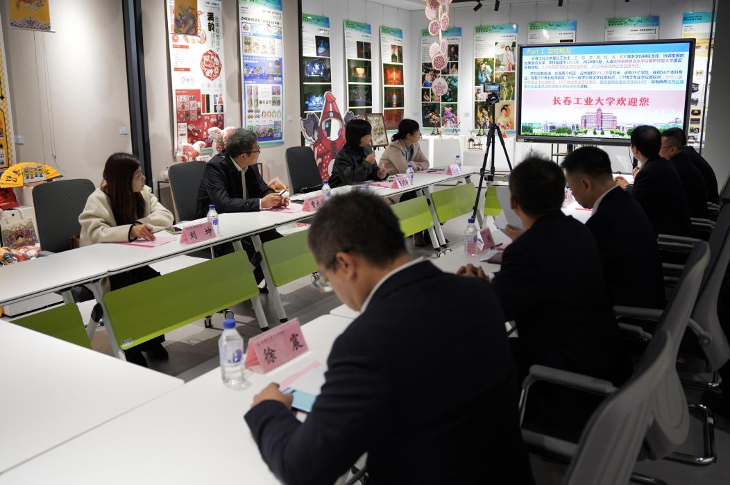 为进一步帮助学生做好职业生涯规划,明确考研目标,了解专业前沿动态,调动考研积极性和主动性,充分掌握考研信息以及高校最新招生政策,加强与研究生高校之间的沟通交流。10月25日6165cc金沙总站检测中心邀请长春工业大学艺术设计学院,在多功能展厅开展两校人才培养对接座谈会。参加会议的有长春工业大学艺术设计学院党委书记曹永利、院长葛英颖、副院长刘坤、姚璐,6165cc金沙总站检测中心校长助理、教务处处长张家成、继续教育学院院长李刚、艺术学院院长孙虎鸣、党总支书记姚玉新、副院长王健、数智化教学实训中心主任兼副院长崔发朋、视觉传达专业教研室主任徐震、以及艺术学院 2021级、2022级全体辅导员和艺术学院学生代表。会议由李刚主持。