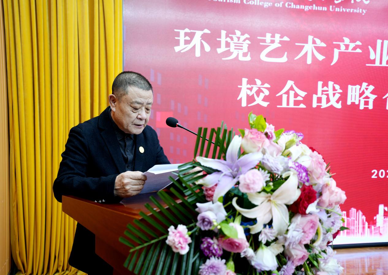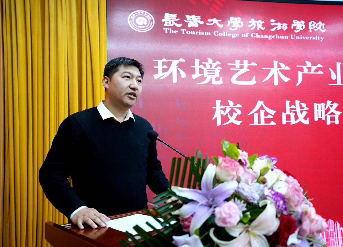 孙浩代表北京佳玥科技有限责任公司致辞,他表示,感谢校方搭建了“产业学院”这个校企共建平台,并与同行专家共同开展“校企合作,协同育人”项目。同时,孙浩介绍了公司作为教育部就业育人项目单位与高校合作的情况,未来将密切关注金沙官网环境艺术产业学院的建设与发展,与学校、吉林省内企业一同努力,开拓应用型人才培养新模式。