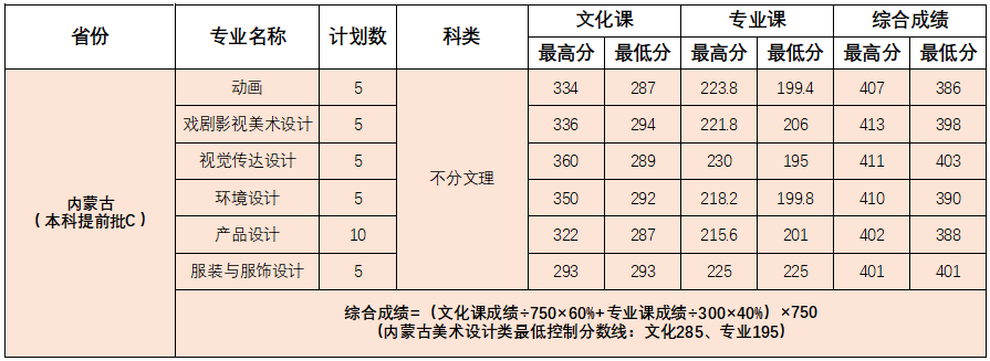 截止2024年7月25日12:00,金沙官网在内蒙艺术类录取圆满结束。录取分数情况如下: