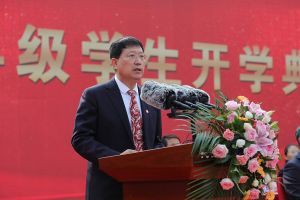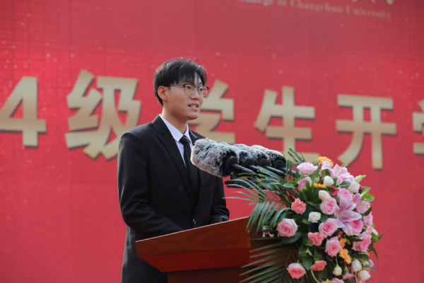 在校生代表工学院黄岩松同学发言。他深情地与新生分享了自己在长旅学习生活的感悟和体会,希望与学弟学妹们能够一同常怀赤子情怀,脚踏无悔之路,在火热的青春中放飞人生梦想,在拼搏的青春中成就事业华章。