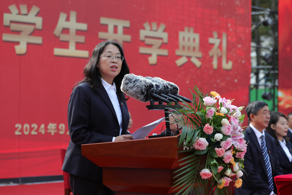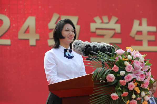 外国语学院、国际交流学院院长彭又新代表教师讲话。她围绕立志高远,笃行不怠;强化能力,夯实根基;健全人格,全面发展;善于沟通,团结协作四个方面与同学们分享对未来学习和成长的期许,希望开启同学们对大学生活的深刻思考。