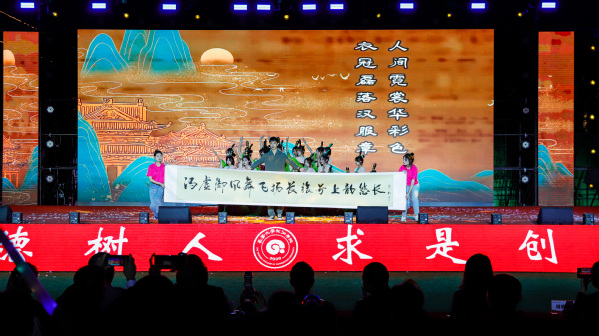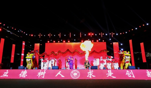在欢快的鼓点声中,《醒狮》栩栩如生,国粹表演变脸、喷火展示了中国传统文化的魅力与风采,激发了青年学子对传统文化的热爱与传承之心。在新中国成立75周年的光辉时刻,歌曲《我和我的祖国》像是一条穿越时空的纽带,将我们与为国家独立、民族解放而英勇斗争的前辈们紧密相连,更如同一面鲜艳的旗帜,引领着我们前行,警醒我们铭记历史、缅怀先烈。