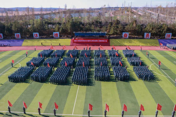 中国人民解放军65370部队承训教官、各学院党政负责人、全体新生辅导员及2024级新生参加大会。