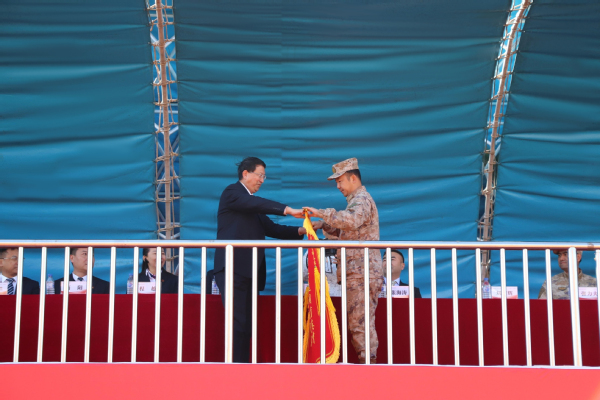 校长刘耀辉代表学校向65370部队承训教官赠送锦旗