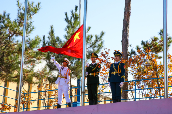 在庄严的国歌声中,大会正式拉开帷幕。正正之旗,堂堂之阵。随着国旗冉冉升起,全场师生肃立,齐唱国歌,表达对祖国的无限热爱和崇高敬意。