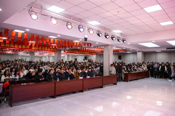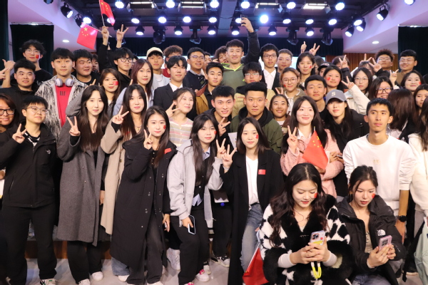 在千余名师生的热切期待下,伴随着现场不绝于耳的欢呼声和呐喊声,陈佳鹏走入会场,现场瞬间被点燃,学生纷纷高举手机记录下这一难忘的见面瞬间。